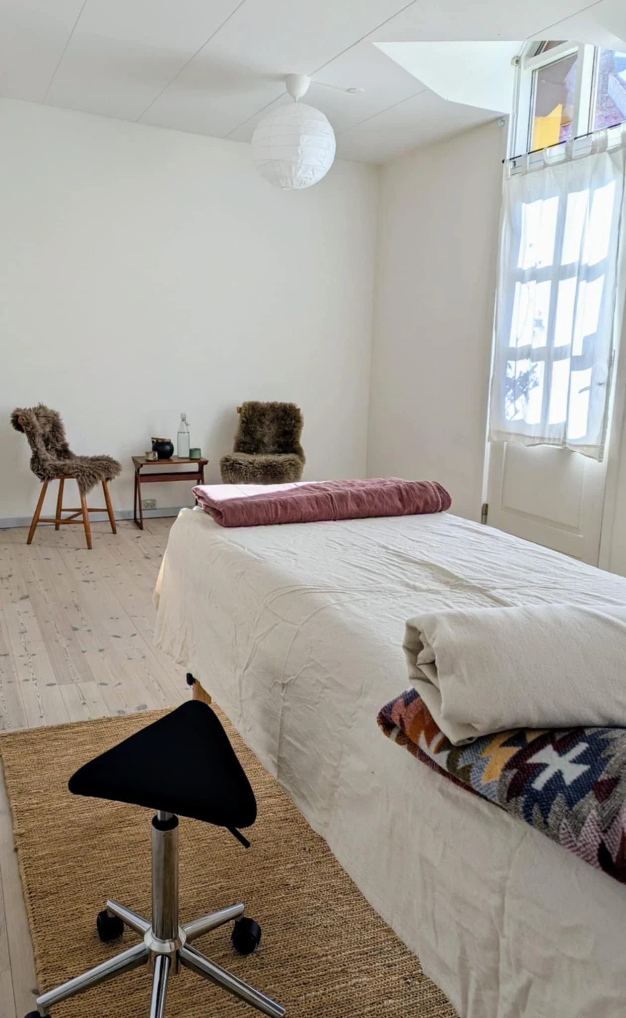 Mine sessioner finder sted på Møllergade 44B i Svendborg i lyse, rolige og rummelige rammer.